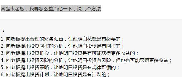 1. 向老板提出合理的财务预算,让他明白花钱是有必要的;