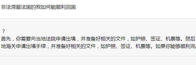 本文共1885个字,通过南京廖华老师整理编辑发布时间时间:2022-12-28 11:36:49, 本文非法滞留法国的我如何能顺利回国网址:http://china-audit.com/bk/30.html,如有问题请联系